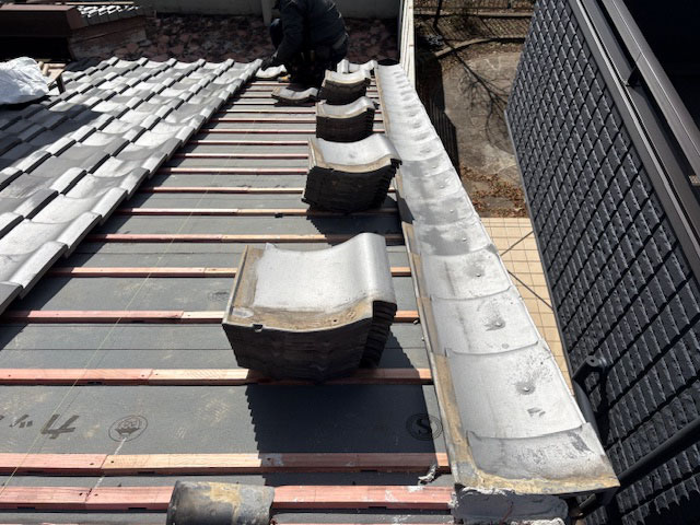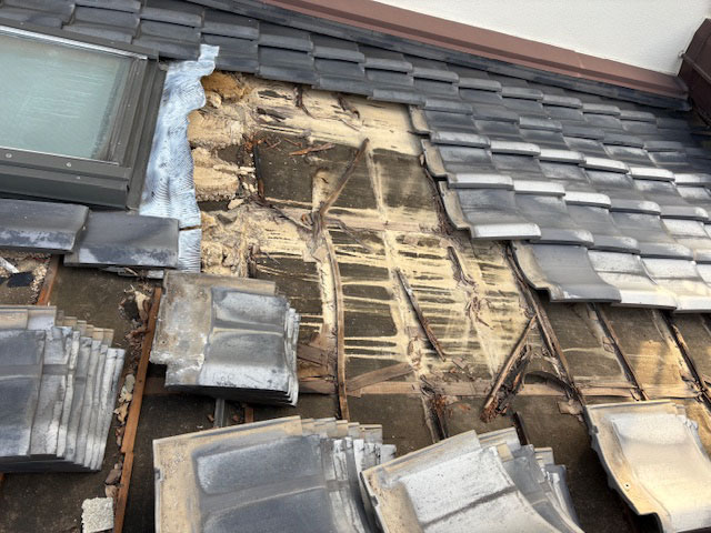 天窓を撤去して、一面を葺きなおしました。瓦の良さは再利用できるところですね。再利用することで、修理代金も安価におさえることができます。