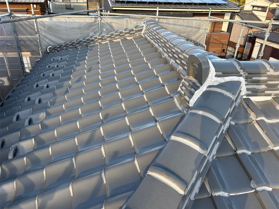 今回は再利用できない瓦を交換して、部分葺き直しをしました。瓦の良さは部分修理が出来るところですね!