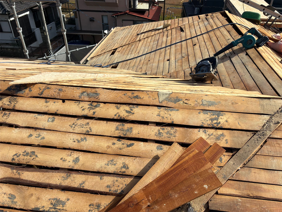 「土葺き和瓦」から「ルーガ鉄平」に葺き替えます。完成後にはまた日記にてご紹介いたします。