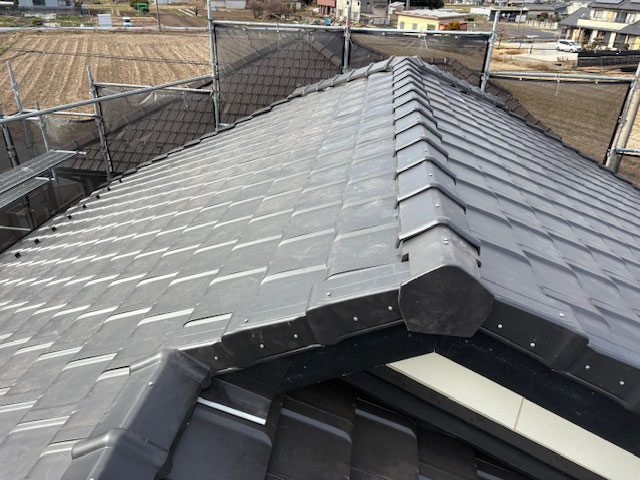 犬山市にて瓦修理工事が完工しました。途中積雪がありましたが、予定通りに終わりました。