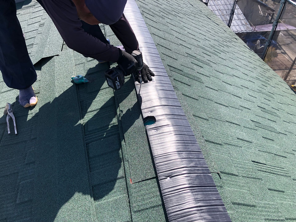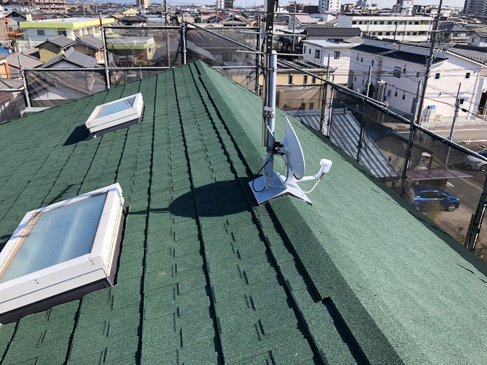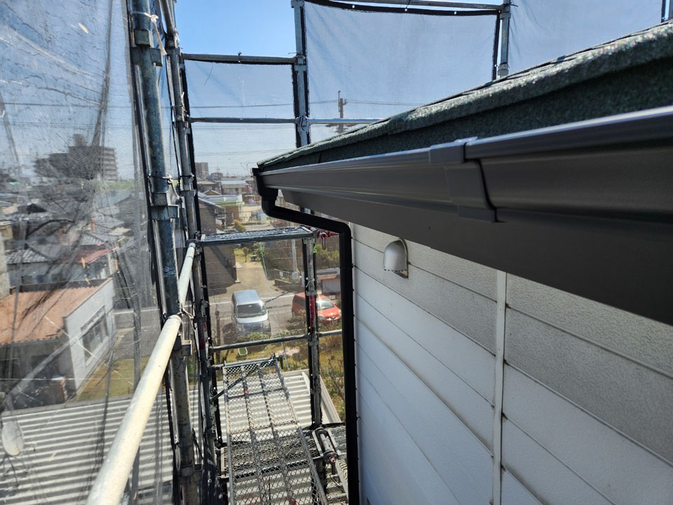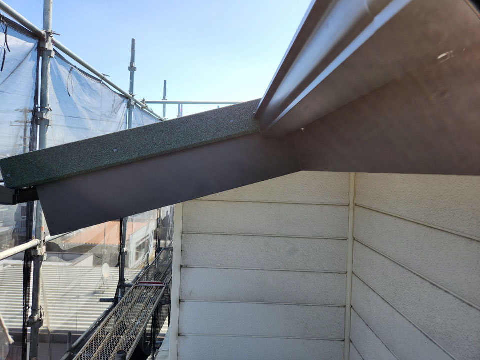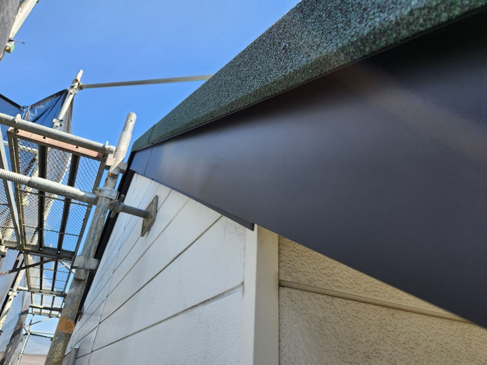 その他の工事として、腐った破風板は新たに板金で巻きました。樋も交換して外壁塗装も行いましたが、本当に綺麗になりました。屋根に付随する工事もどうぞお気軽にご相談ください。