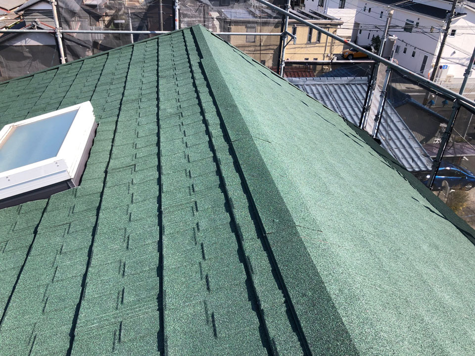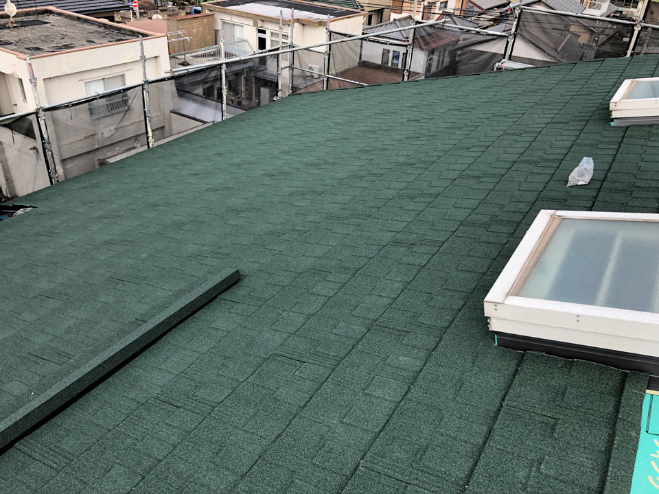 今回はLIXILの「T-ルーフ モダンN」でカバーしました。T-ルーフには基材保証30年と美観保証10年のメーカー保証が付いていますので安心です!(^^♪